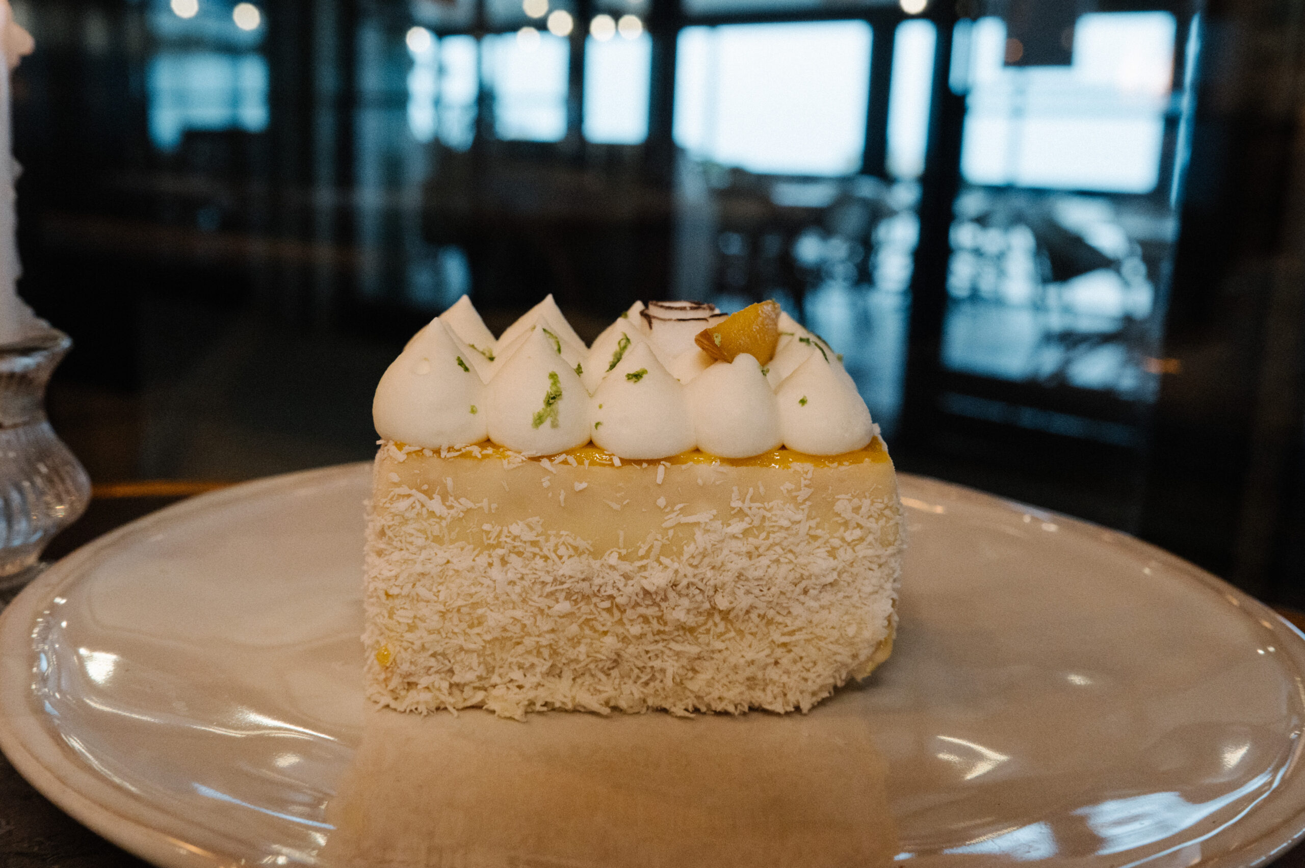 sorbet ananas, coulis passion, mousse coco et citron vert.